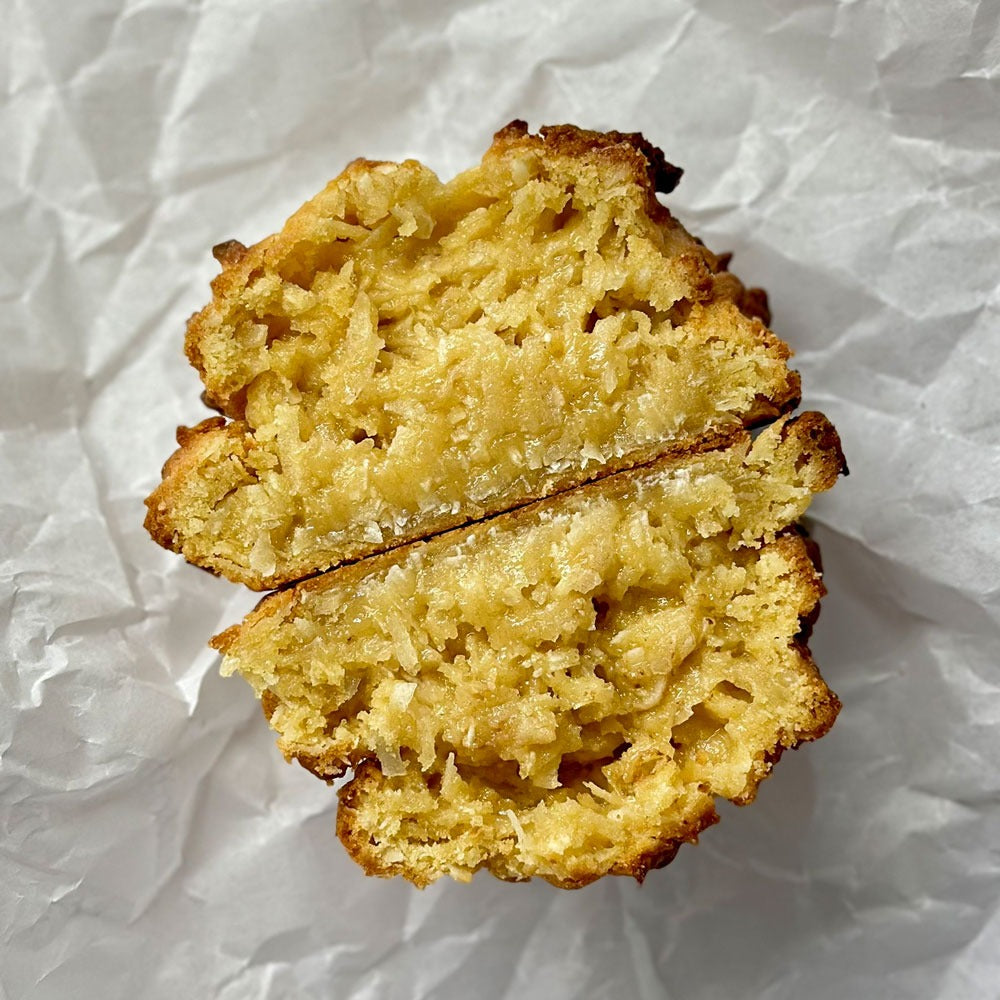 General ingredients: wheat flour, shredded, coconut, sugar, butter, eggs, raising powders, vanilla and salt.